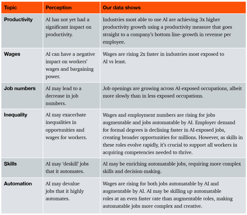 There has been a narrative out there that AI is coming for jobs, and that can create a lot of fear and anxiety for workers. We know that every time we have an industrial revolution, there are more jobs created than lost. [….] The challenge is not that there won’t be jobs. It’s that workers and their skills need to be quite different.