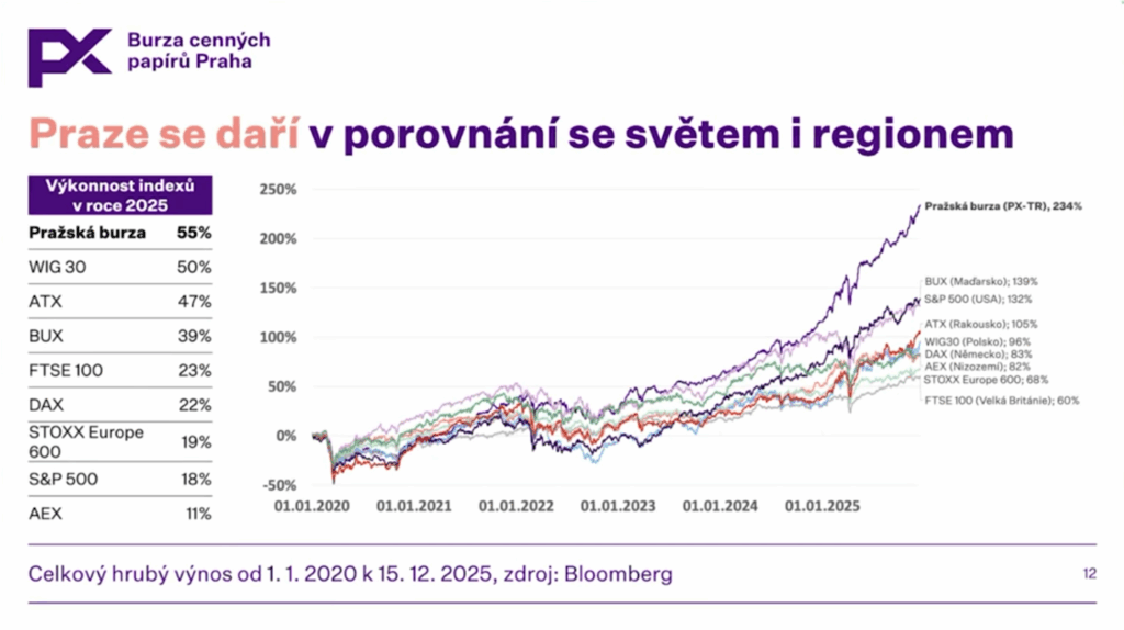 To, že české akcie v roce předvedly krasojízdu a doručily skvostných 55%, jste se asi díky silnému PR oddělení pražské burzy dozvěděli všichni a několikrát. I když musíme mít na paměti, že „index“ PX-TR je tvořen z více než 90% jen 5 (!) firmami – z toho 4 z finančního sektoru – a má tak blíž k vývoji akcie jedné firmy než celého diverzifikovaného indexu typu S&P 500, je srovnání s indexy zajímavé a ukazuje, že diverzifikace do českých akcií měla za poslední roky smysl. Pražské burze tento úspěch přeju, myslím, že si ho také dost odpracovala, a mám z toho radost.